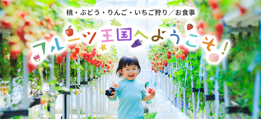 早春のいちご狩りから始まり、初夏は桃源郷の景観の中での桃狩り、紅葉の季節のぶどう狩り、りんご狩りまで。